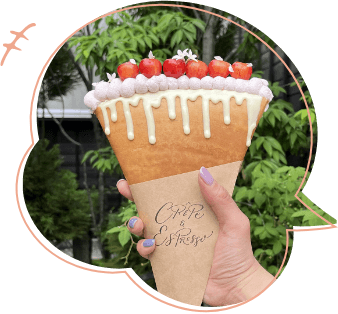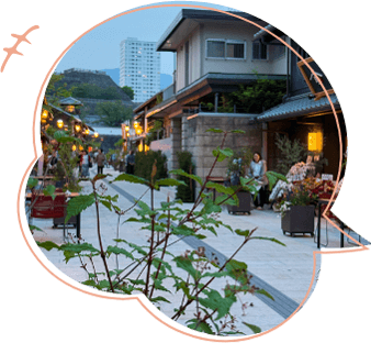 周辺にはおしゃれなカフェや美味しいグルメ、伝統的な工芸品のお店など、旅の気分を盛り上げてくれるスポットがたくさん!
