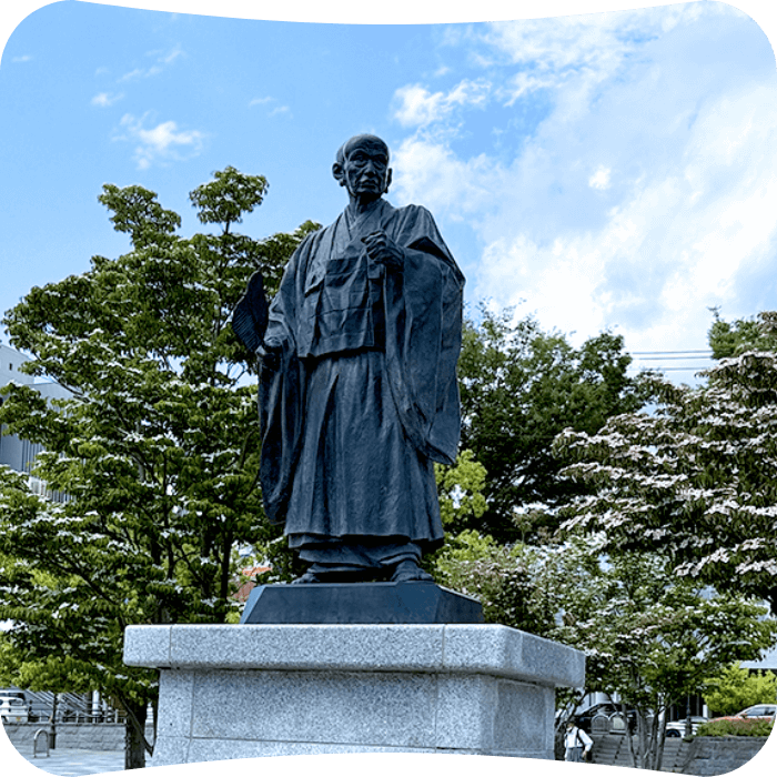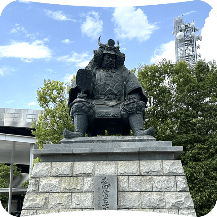 甲府駅北口、国の統一後登ったとされる富士山を見据えています。