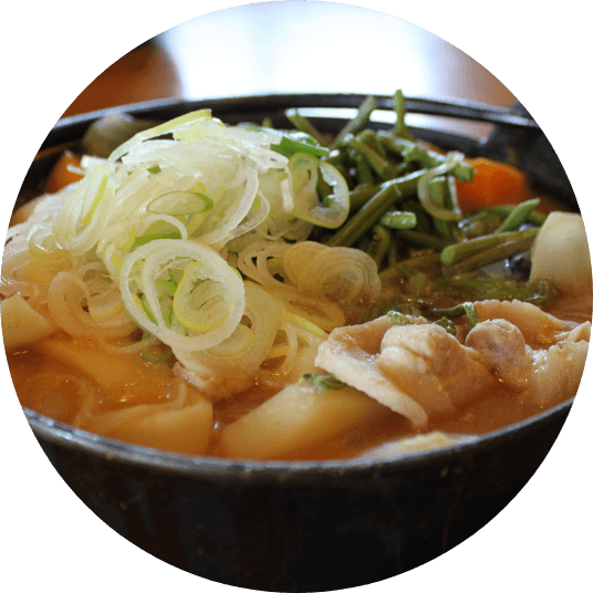 武田信玄の陣中食として生まれ、江戸時代には甲斐国の名物だったといわれている「ほうとう」は山梨を代表する郷土料理です。小麦粉を練って平らに切った麺を味噌のスープで煮て、かぼちゃやにんじん、じゃがいも、きのこ、白菜、里芋など、季節の野菜や肉もたくさん入れて、鉄鍋などで提供されます。甲府の多くのお店で食べられていて、県外からもわざわざ食べに来る人がいるほど、人気のある料理となっています。