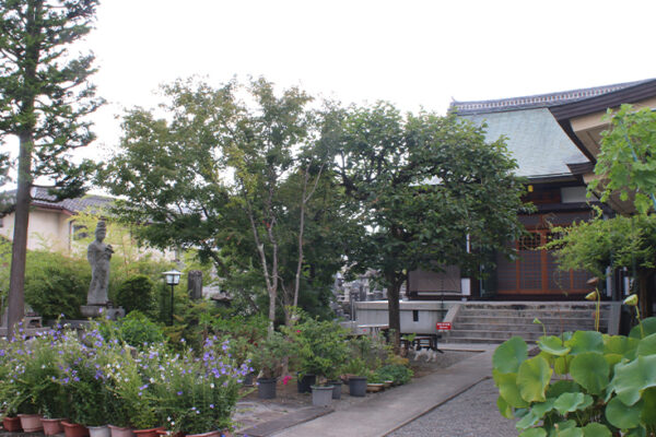 甲府にある成田山不動堂。境内から丁度正面に向かってお百度石があります。