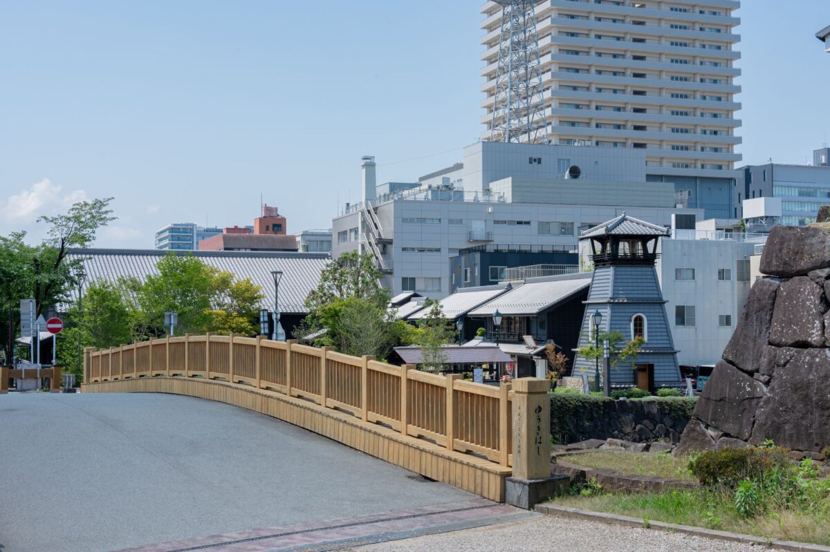 その道から公園内へ少し入った、“甲府城 鍛冶曲輪跡(かじくるわあと)”の広場は、現在、多くのイベントに利用され、信玄公祭りの出陣式が行われるなど、歴史と文化を感じさせる空間となっています。その広場のそばに、ホテル-Cafe&Barがオープン!