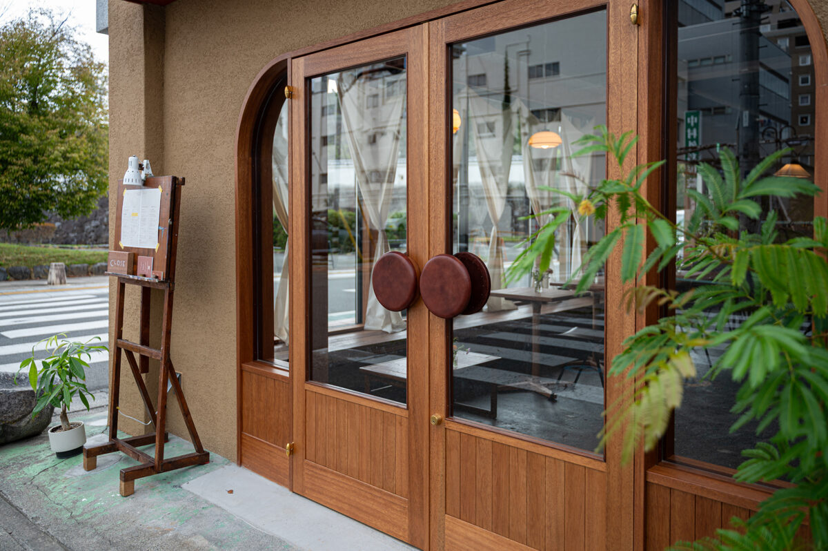 今回は、舞鶴城公園の南東側の近くにある「horn(ホルン) | 山梨・甲府の小さなホテル-Cafe&Bar」へ伺いました。建物は3階建で、3階には、宿泊施設が2025年11月にオープン予定。